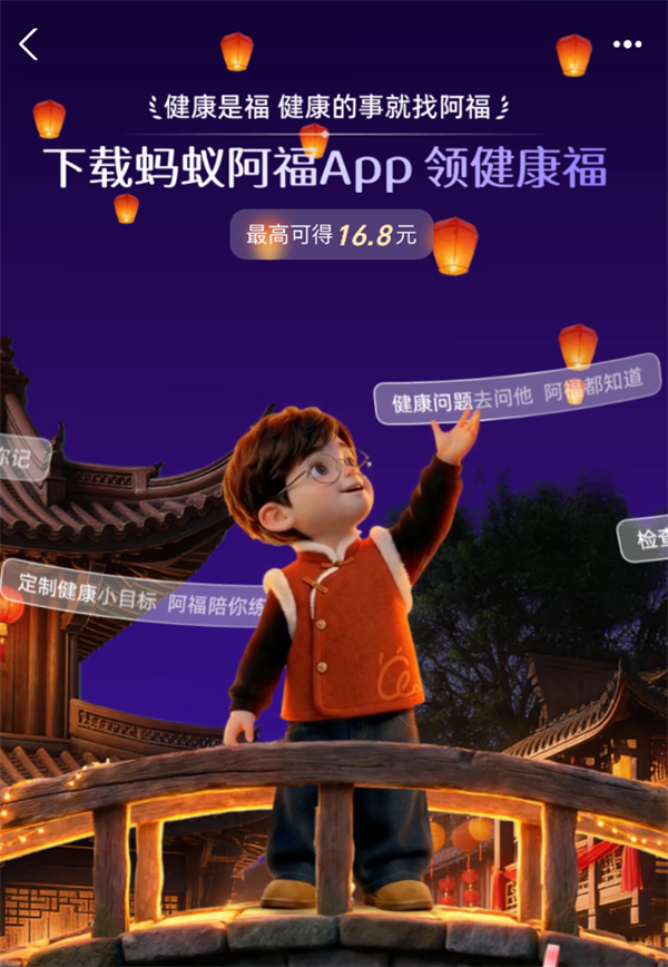 值得一提的是,今年在传统五福之外还新增了健康福,由蚂蚁阿福发放,最高可获得16.8元,红包实时到账,在线下场景用支付宝支付即可使用,7天内有效。