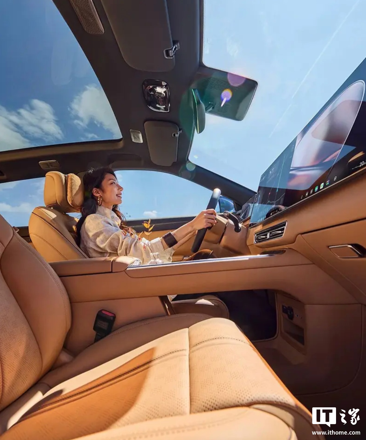 IT之家参考官图获悉,该车搭载椭圆形双辐方向盘,提供了前排手机无线充电、流媒体后视镜、双杯架、真皮座椅、全景天窗等特性。车辆使用液晶仪表 + 30 英寸 6K 贯通式中控设计,搭配 2880 瓦功率的伯牙之音扬声器,便于副驾驶座位乘客娱乐需求。