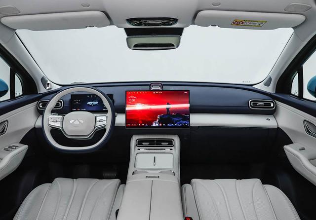奇瑞风云T9L车内采用简约式设计取向,全系搭载10.25英寸液晶仪表与15.6英寸悬浮式中控屏,230 Ultra及200四驱超能超舒适版可选装17.3英寸吸顶式后舱娱乐屏。在此基础上,奇瑞风云T9L配套灵犀智舱2.0,HUAWEI HiCar+Carplay+CarLink手机互联、哨兵模式等功能应有尽有。